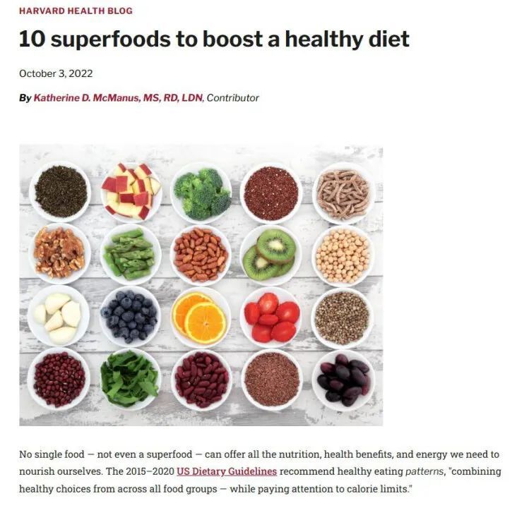 正如在国内被奉为圭臬的文章强调的那样:“没有任何一种食物,即使是超级食物,能够提供我们所需的所有营养、健康益处和能量。”
